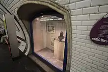 Hoche (French: [ɔʃ] ⓘ) is a station of the Paris Métro, serving line 5. It is named after the nearby rue Hoche, which in turn was named after Lazare Hoche (1768-1797), a general during the French Revolution who at the age of 25, commanded the Army of the Moselle in which he drove the Austrians back to Wœrth, cleared Landau and Alsace. The platform in the direction of Bobigny contains in a display case where a bust of Lazare Hoche as well as several images evoking his life as a general were installed.