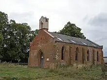 The church at Nuthurst - at the time a curate chapel of Hampton in Arden - dates from at least 1216 and was dedicated to St Peter. A painting from 1820 shows the church in ruins and the only thing that remains of the church now is the graveyard and a ruined mortuary chapel dating from the 1800s.[5] The church likely fell out of use because of the construction of the church of St Thomas in Hockley Heath, which was closer to the main road of the hamlet.