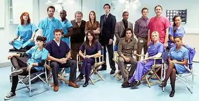 Several cast members departed during the course of the series. Kensit resigned from the show during its twelfth series and departed at the end of 2010, having filmed her final scenes on 8 October 2010.[23] She stated that she had had a "fantastic time playing Faye but [...] felt it was the right time to move on."[24] Mealing resigned during 2010 after six years in the role of Connie. Campbell deemed Mealing "an invaluable asset" to the series, commenting: "She created an iconic character and Connie will not be forgotten. Connie will have a dramatic but heart-warming departure which will tie into the dramatic entrance of an exciting new regular character."[25][26] Roberts also announced his resignation in 2010, after being cast in Pirates of the Caribbean: On Stranger Tides.[27] He filmed his final scenes for Holby City in September 2010.[28] Quarshie took a break from the series when Ric was written out to recuperate from his cancer treatment.[29] Powell also departed from the series to return to working in theatre, explaining: "I've been there for six years, and that was five years longer than I ever anticipated staying, and it just struck me that it was probably time to move on and go back to [my] roots."[30] Jacobs left the show in March 2011, after seven years playing Donna.[31] As the series had seen the departure of so many cast members, and the introduction of many new ones, Jacobs deemed it "a new era with a new cast", one which she was not part of, and stated that the time felt right to leave.[32] Catherwood departed the following month, when her character Penny was killed off.