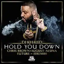 "Hold You Down" is a song by American disc jockey DJ Khaled featuring American singers Chris Brown, August Alsina, Future and Jeremih from the former's eighth studio album I Changed a Lot. It was released on August 3, 2014 as the albums second single, becoming certified gold by Recording Industry Association of America (RIAA) on June 4, 2015. The track topped the US Hot R&B/Hip-Hop Airplay chart and is August Alsina's first top 40 entry, as well as DJ Khaled's seventh.[2]