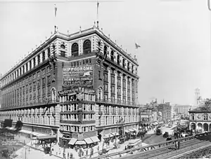 Macy's headquarters at Macy's Herald Square in New York City, for example, does not cover the whole block because of a holdout named the Million Dollar Corner on the corner of Broadway and West 34th Street (in Herald Square). Now decorated as a Macy's shopping bag, the building received its name from the fact that it sold for a million dollars in 1911, an unprecedented sum at the time.