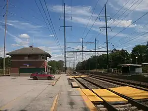 The station is located along the Northeast Corridor, owned by Amtrak. It is 13.1 miles (21.1 km) from Suburban Station. In 2017, this station saw 471 boardings and 248 alightings on an average weekday.
