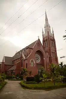 The cathedral was designed by Robert Chisholm, a Madras-based architect, in the Indo-Saracenic style to adapt to warm and humid conditions.[1] Construction began in 1886, with the laying of the foundation stone by Lord Dufferin, the Viceroy of India, and was completed in 1894.[2] The pipe organ was destroyed during the Second World War and could not be restored so an electric substitute organ was installed. The stained glass windows were repaired in 2003.[3] The cathedral is listed on the Yangon City Heritage List.[4] The cathedral is located next to a formerly associated missionary school, Basic Education High School No. 1 Pabedan (formerly Saint Mary's School).
