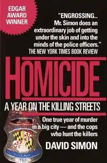 Homicide: A Year on the Killing Streets is a 1991 book written by Baltimore Sun reporter David Simon describing a year spent with detectives from the Baltimore Police Department Homicide Unit. The book received the 1992 Edgar Award in the Best Fact Crime category.[1]