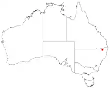 This species grows at higher altitudes and is restricted to an area north-west of Torrington in northern New South Wales where it grows on shallow sandy soils in heath and shrubby woodland on or adjacent to granite outcrops.[5]
