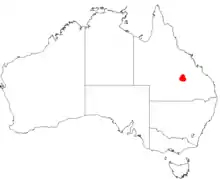 This homoranthus grows in shrubby woodland and heath on shallow, sandy soils derived from sandstone. It is only known from the Salvator Rosa section of Carnarvon National Park where it grows on Homoranthus Hill.[2][7][8]