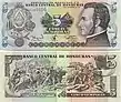 The Bank of Honduras and the Banco Atlantida issued the first lempira banknotes in 1932. They were in denominations of 1, 2, 5, 10 and 20 lempiras. The Central Bank of Honduras took over production of paper money in 1950, introducing 50 and 100 lempiras notes in 1950, followed by the 500-lempiras note in 1995.
