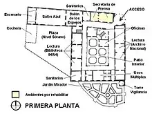 In 1883 the president of Honduras, the General Luis Bográn, decided that the busy house by the Plaza de la Merced was not suitable enough, and moved the offices to another building, which was to the right of the session hall of the National Congress. This building had stone foundations, walls made out of adobe, and wide living rooms for the governmental administration, decorated with the national banner, pavilion, shields, and paintings of the national heroes. It also had a part allocated for the guard or presidential escort, which would later become the School of Capes and Sergeants.