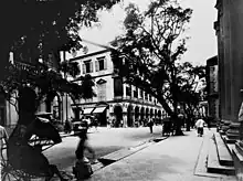 Hong Kong Club in 1890 at the corner of D'Aguilar Street and Queen's Road, opposite the Supreme Court (It is the building on the left, not the one in the centre).