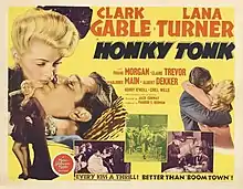 Honky Tonk is a 1941 black-and-white Western film directed by Jack Conway, produced by Pandro S. Berman, and starring Clark Gable and Lana Turner. The supporting cast features Claire Trevor, Frank Morgan, Marjorie Main, Albert Dekker and Chill Wills.