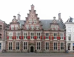To meet efficiently, the Hoogheemraadschap bought a meeting hall in 1578, that was also the permanent residence of the Dike warden. The facade was renovated twenty years later in 1598 to keep up with the new town hall.[3] This Gemeenlandshuis is the first one used by the Hoogheemraadschap van Rijnland, but to meet with the Amsterdam Water Board and inspect the dikes along the Haarlemmertrekvaart and the sluices at Halfweg, the Gemeenlandshuis Zwanenburg was built by Pieter Post in 1645-1648. Though nearly demolished today, there is a town named after this building in the Haarlemmermeerpolder called Zwanenburg.