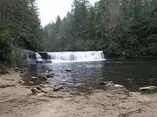 Hooker Falls is a 14-foot (3 m) waterfall located in the DuPont State Forest, southeast of Brevard, North Carolina.