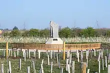 The central memorial area is surrounded by wildflowers and a 12m long bench.