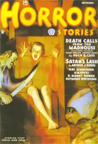 Horror Stories was an American pulp magazine that published tales of the supernatural, horror, and macabre. The first issue was published in January 1935, three years after the weird menace genre had begun with Dime Mystery Magazine. Horror Stories was a sister magazine to Terror Tales, whose first issue came out a year earlier. The title went on to become one of the major pulp magazines of the 1930s.