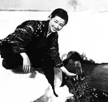 Horse was written and directed by Kajirō Yamamoto. Akira Kurosawa is credited as the film's production coordinator, but in his autobiography, Something Like an Autobiography, Kurosawa likened his actual role to "first assistant director".[2] It is the last film Kurosawa worked on as an assistant before starting his own directing career.[2] The film took three years to plan and a year to film. Yamamoto later stated in an interview that his then-assistant Kurosawa "took responsibility for second unit work" while Yamamoto worked on a musical comedy in Tokyo.[3] Kurosawa wrote in his autobiography that he, in addition to his position as first assistant and second unit director, co-scripted and edited the film.[4] The final shot of Uma has been compared to the final shot of Kurosawa's second film, The Most Beautiful, which also emphasizes the personal sacrifice of a young woman during wartime.[5]