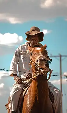 The Thoroughbred is bred locally for outbreeding, working equitation and income generation, as well as for cultural reasons such as horse racing and sport riding.[49] The Appaloosa,[50] Quarter Horse,[51] Nooitgedacht,[52] Arabian[53] and sport horse[54] are bred for the same reasons, plus hunting, pack farming and manure recovery. The Boer is also used for children's riding.[55] The Tswana is bred for all the above purposes, as well as for its meat.[56]