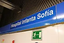 Hospital Infanta Sofía [ospiˈtal iɱˈfanta soˈfi.a] is the northern terminus of Line 10 of the Madrid Metro, serving the Hospital Universitario Infanta Sofía ("Princess Sofía University Hospital"). It is located in fare Zone B1.[1]