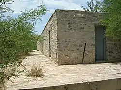 In the historic district, there are petrogylphs made by Native Americans. The springs were visited by Pedro de Rábago y Terán in 1747, who found Apaches farming the area. In later years the Comanche Trail passed nearby.[4] The hot springs remain, at a temperature of 105 degrees Fahrenheit, and may be used for soaking.[2] The water contains sodium, potassium, calcium, magnesium, sulfate, chloride and smaller concentrations of arsenic, lithium, rubidium, strontium, thallium, uranium, and tungsten.[5]