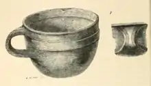 Projection of handle from surface of cup to outer surface of handle, .85; average thickness of cup, .2.According to these measurements I find, by calculation, that the capacity of the cup is a little more than half a pint.[6]
