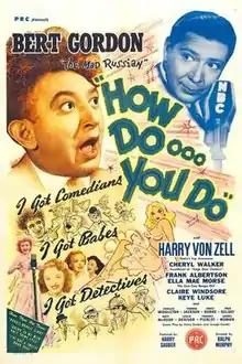 How Doooo You Do!!! is a 1945 American comedy film directed by Ralph Murphy and written by Harry Sauber and Joseph Carole. The film stars Bert Gordon, Harry von Zell, Cheryl Walker, Ella Mae Morse, Frank Albertson and Claire Windsor. The film was released on December 24, 1945, by Producers Releasing Corporation.[1][2][3]