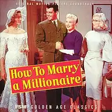 The music soundtrack from How to Marry a Millionaire was first released on CD by Film Score Monthly, as part of Film Score Monthly's series Golden Age Classics, on March 15, 2001,[2] as a limited edition of 3,000 copies,[3] and then it was re-release on January 4, 2005.[4]