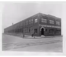 Successful sales volume required a larger factory. A new facility was built on a 22-acre (8.9 ha) parcel at Jefferson Avenue and Conner Avenue in Detroit's Fairview section that was diagonally across from the Chalmers Automobile plant.[1] The land was the former farm of D.J. Campau. It was designed by the firm of renowned industrial architect Albert Kahn with 223,500 square feet and opened on October 29, 1910.[5] Production in 1911 increased to 6,486.[6] For 1914, Hudsons for the American market were now left-hand drive.
