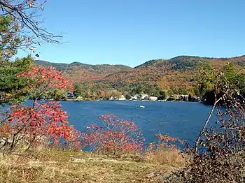 The area sees most of its tourism during the summer and the fall foliage season, virtually shutting down in winter.[13] Nearby attractions include lake cruises, canoeing, golf, and hiking.[13] Historic attractions of Huletts Landing also included hunting and local proprietors of the late nineteenth and early twentieth centuries provided weekly fireworks displays during tourist season.[4]
