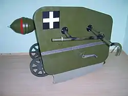 ![]() A replica 44M Buzogányvető on a wheeled mount | |