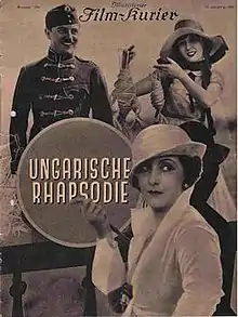 Hungarian Rhapsody (German: Ungarische Rhapsodie) is a 1928 German silent drama film directed by Hanns Schwarz and starring Lil Dagover, Willy Fritsch and Dita Parlo.[1] It depicts the life of an impoverished Hungarian aristocrat.