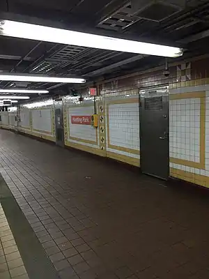 Hunting Park station is a SEPTA subway stop in Philadelphia. Served by the Broad Street Line, it is located at 4200 North Broad Street at Hunting Park Avenue in the Hunting Park section of North Philadelphia, Pennsylvania. This is a local station, and thus has four tracks, with only the outer two being served. There are separate fare control areas for the northbound and southbound platforms, and no crossover exists.