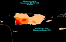 - 1 2 John V. Vaiksnoras (October 11, 1963). The Affects of Hurricane "Edith" to Puerto Rico and Virgin Islands September 26–27, 1963. United States Weather Bureau (Report). National Hurricane Center. p. 2. Retrieved August 21, 2013.
