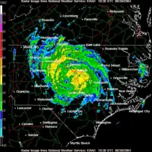Radar image of Gaston after landfall on August 29 (National Weather Service).