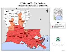 Disaster declarations by parish within Louisiana from Hurricane Lili