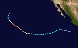 {{cite journal}}: Cite journal requires|journal=(help) - 1 2 3 National Hurricane Center; Hurricane Research Division; Central Pacific Hurricane Center (April 4, 2023). "The Northeast and North Central Pacific hurricane database 1949–2022". United States National Oceanic and Atmospheric Administration's National Weather Service. A guide on how to read the database is available here.