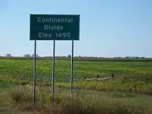 At approximately milemarker 275 on the westbound lanes between Jamestown and Valley City, the highway crosses the Laurentian Divide, at an elevation of 1,490 feet (450 m) above sea level. The rivers that are west of this divide flow south into the Atlantic Ocean from the Gulf of Mexico, while the rivers that are east of the divide flow north into Hudson Bay. The James River, that flows through Jamestown, feeds into the Atlantic Ocean, while the Sheyenne River, that flows through Valley City (36 miles (58 km) east of Jamestown), feeds into Hudson Bay.