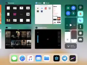 Certain new iOS 11 features are only available on the iPad. The application dock gets an overhaul, bringing it closer to the design seen on macOS, and is accessible from any screen, letting users more easily open apps in split-screen view.[30][31] Users can also drag-and-drop files across different apps.[30][31][32] A new multitasking interface shows multiple apps on the screen at the same time in floating "windows."[30][31] Additionally, through a combination of "slide over," "split view," and "picture-in-picture" modes, users can have up to four active apps on-screen at the same time.[33]