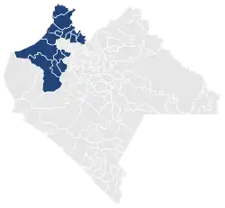 The Fourth District of Chiapas is located in the north-western portion of the state and covers the municipalities of Amatán, Berriozábal, Coapilla, Copainalá, Ixtacomitán, Ixtapangajoya, Juárez, Ocozocoautla de Espinosa, Ostuacán, Pichucalco, Reforma, San Fernando, Solosuchiapa, Sunuapa and Tecpatán.[1]