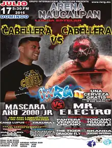 The IWRG Cabellera vs. Cabellera (July 2016) show (Spanish for "hair versus hair") was a professional wrestling supercard event produced by Mexican professional wrestling promotion International Wrestling Revolution Group (IWRG), and took place on July 17, 2016, in Arena Naucalpan, Naucalpan, State of Mexico, Mexico. The focal point of the Caballera vs. Caballera series of shows is one or more traditional Lucha de Apuestas, or "Bet matches", where all competitors in the match risk their hair on the outcome of the match. The Lucha de Apuestas is considered the most prestigious match type in lucha libre, especially when a wrestlers mask is on the line, but the "hair vs. hair" stipulation is held in almost as high regard.