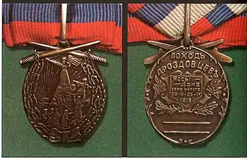 The Iași–Don March, also known in Russia as Drozdovsky's March or the Romanian March, was a march of a Russian Volunteer detachment, led by Staff Colonel Mikhail Drozdovsky during the Russian Civil War. The detachment marched from Iași on the Romanian front to the Don, to join the White Russian Volunteer Army of General Lavr Kornilov and fight the Bolshevik enemy together. It took place between February 26 (New Style March 11) and April 24 (New Style May 7), 1918. This March, as well as the First Kuban Campaign, was a milestone in the formation of the White movement in Southern Russia.