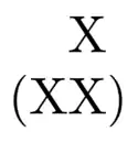 A bracketed grid representation of an iamb. The x's in the lower grid are syllables, the x in the upper grid indicates the position of the stressed syllable.