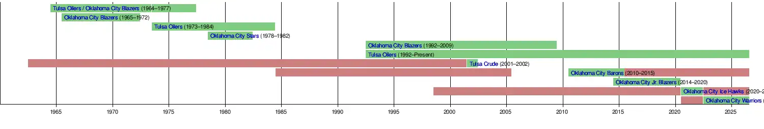 | Tulsa Oilers | Tulsa | CPHL | 1964–1973 | Oklahoma City Blazers (second) |
