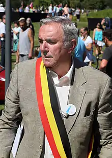 Following the example of his wife, he became a member of the local council in Ellezelles in 2000 as a representative of the centrist Humanist Democratic Centre ("Centre démocrate humaniste" / cdH) party.[2] Since 2006 he has been the mayor of Ellezelles, which in administrative terms is a grouping of rural parishes with a total population of approximately 6,000 people. He retained his mayoral post at the 2012 elections.[4]