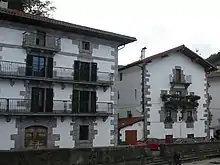 In 1925 Baleztena co-founded Euskeraren Adiskideak, a society promoting Basque culture in Navarre.[99] In 1931 he set up Záldiko Máldiko, a semi-private group focusing on folk dances and performing on festivals across Spanish and French Navarre.[100] The grouping was re-formatted in 1934 as a Basque cultural folk association named Muthiko Alaiak, specialising in dance and theatric performances.[101] Dominated by Carlists, Muthiko functioned as a vehicle for promoting Traditionalist vision of Navarrese society,[102] though Baleztena did not refrain from mocking authorities (first Republican and later Francoist),[103] especially by means of kurriños,[104] performed often during local Carlist political events.[105] After the Civil War Muthiko was considered the centre of antifrancoist Carlism.[106] The group occasionally took part in official events,[107] but it was registered as late as in 1949[108] and following continuous harassment,[109] was re-opened in 1954.[110] Though the last floor of the Baleztena house served as a stage for rehearsals,[111] over time Baleztena lost control over Muthiko. As early as 1956 the communist intelligence considered the group a potentially promising area[112] and indeed, in the 1960s[113] it became a nucleus of socialism,[114] which it remains until today,[115] actively promoting also the Basque nationalism.[116]