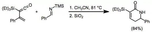 - ↑ Bennett, D. M.; Okamoto, I.; Danheiser, R. L. (1999). "Hetero 4 + 2 cycloadditions of (trialkylsilyl)vinylketenes. Synthesis of alpha,beta-unsaturated delta-valerolactones and -lactams". Org. Lett. 1 (4): 641–4. doi:10.1021/ol9907217. PMID 10823193.
