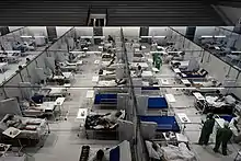Mexico City was at the height of its outbreak, officials say it is facing a rush of cases with an understaffed and underserved hospital system. The authorities started a crash program to scale up. More than 40,000 individuals were hired. Private hospitals agreed to accept thousands of patients for routine operations to relieve the public system along with the military and social security hospitals. Beds were also added in tent hospitals, convention centers and racetracks.[38] Doctors in Cuba have used social media to denounce the lack of drugs, oxygen, and other materials needed to fight a terrible outbreak of COVID19.[39]
