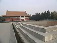 The Imperial City (Chinese: 北京皇城; pinyin: Běijīng Huángchéng; lit. 'Beijing Imperial City') is a section of the city of Beijing in the Ming and Qing dynasties, with the Forbidden City at its center. It refers to the collection of gardens, shrines, and other service areas between the Forbidden City and the Inner City of ancient Beijing. The Imperial City was surrounded by a wall and accessed through seven gates and it includes historical places such as the Forbidden City, Tiananmen, Zhongnanhai, Beihai Park, Zhongshan Park, Jingshan, Imperial Ancestral Temple, and Xiancantan.[1]