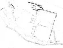 Plan of Baths of Vicarello with nymphaeum (top) and hot spring buildings (left)
