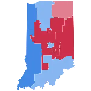 Indiana was one of four states (along with Wisconsin, Nevada, and New Mexico) where the party that won the most seats, did not win the most votes in the state.