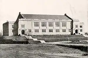 McCracken's first IU team was led by All-American Ernie Andres, later a McCracken basketball assistant.[14] In McCracken's first year, the team finished 17–3, splitting games with both Purdue and eventual NCAA runnerup Ohio State.[14] The following year the 1939–40 NCAA title team, led by All-American Marvin Huffman, would take Indiana to unprecedented success: an NCAA title and a record (at the time) 20 wins.[16] The 20–3 record by that team would not be bested for another 13 years until broken again by Indiana.[16] At their home court at The Fieldhouse, Indiana saw six perfect seasons including a 24-game unbeaten home winning streak from 1938 to 1941. In 1948, McCracken was responsible for recruiting Bill Garrett who became the first African American player in Big Ten varsity basketball history.