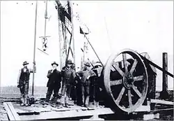 Almost every community in the Trenton Field had a gas well. Many were purchased by local governments, which used revenues for community amenities. Many towns and cities installed free gas lighting throughout their communities, supplied by their own gas wells.[4] Communities also piped gas to private homes to provide cheap heating fuel, helping to make urban living more desirable. Gas was used to produce electricity that ran electric street cars in several cities. Businessmen also established corporations to purchase the gas from the local markets and sell it wholesale on the national market.[5]